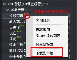 暴风目前是可以支持下载功能的,右键在线列表中的节目即可将影片下载到本地(有些合作网站的视频暂不支持该功能);