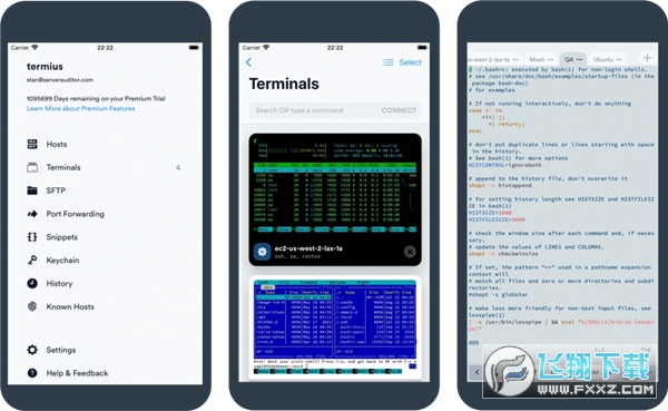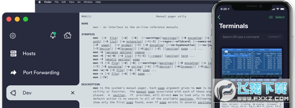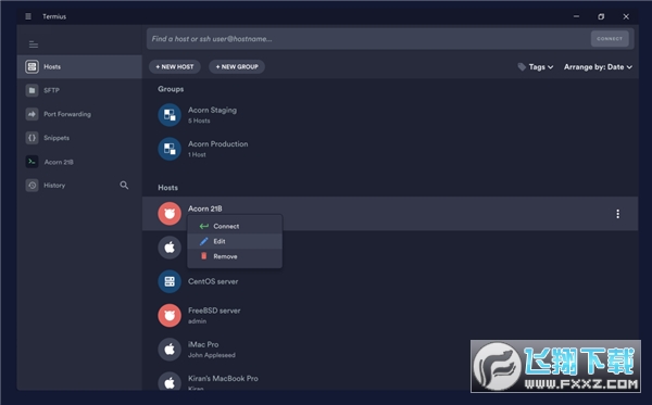 3、上都可以使用Termius享受精美的手工界面支持SSH、Mosh和Telnet会话。